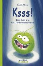 Treffen sich drei Außenseiter… so oder ähnlich könnte die Einschätzung über das Buch sein, wenn man es nur aus Erwachsenensicht betrachtet. Lise wird aufgrund ihrer etwas burschikosen Art von den anderen Mädchen ausgeschlossen, der leicht lispelnde Paul ist ein Sportversager und wird deshalb von den anderen Jungs nicht gemocht und ernährt sich dazu viel zu ungesund. Lise und Paul kommen immerhin gut miteinander zurecht, wünschen sich aber, dass es für sie etwas einfacher wäre. Eines Tages entdeckt Lise nach dem Sport in der Mädchenumkleide etwas Merkwürdiges unter der Garderobe: zwei leuchtende Punkte, eine Art Fellknäuel, das vor sich hinzischelt. Bevor sie es näher untersuchen kann, wird sie auch schon hinausgerufen. Aber zusammen mit Paul will sie der Sache auf den Grund gehen. Und tatsächlich: sie finden das kleine Ding und locken es mit Erdnussflips aus seinem Versteck. Das gibt dann erst einmal Probleme mit dem unglaublich fiesen Hausmeister, der die Kinder mit Schimpfnamen eindeckt, dass man sich die Ohren waschen muss. Aber davon lassen sich die zwei nicht abhalten und entwickeln einen Plan, wie sie nach Schulschluss in die Turnhalle einsteigen können. Dort müssen sie das kleine Monster erst einmal suchen und zweifeln am Ende an seiner Existenz. Aber über dessen gewaltigen Hunger kommen sie ihm wieder auf die Spur. Und siehe da: es ist eigentlich ganz zutraulich! Und es kann sprechen! Und das neue gesunde Essen von Paul mag es auch. Und darüber hinaus hat das Monsterchen ein ganz eigenes Problem: es kann nicht monsterig schauen und auch keine monsterwürdigen Geräusche von sich geben. Paul und Lise beschließen, dem Monster dabei zu helfen. Aber auch andere Dinge gehen vor sich: Paul wird durch das neu aufgenommene Judo-Training selbstbewusster, traut sich zum Schutz von Lise Widerworte zu und auf einmal werden die beiden auch von anderen Kindern anders wahrgenommen und finden Anschluss. Und Lise kann endlich auch ihrer Mutter erzählen, was so alles verkehrt läuft in der Schule mit den blöden Mitschülerinnen und dem noch blöderen Hausmeister. Und selbst in der Klasse ergibt sich auf einmal eine ganz neue Situation. Natürlich gibt es am Ende auch einen Showdown mit dem Hausmeister, aber da zeigt sich, was Ksss alles gelernt hat.